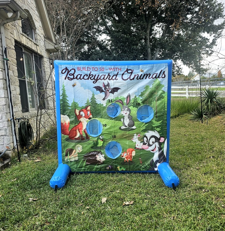 Treat your guests or attendees to one or more awesome interactive games that will entertain them for hours. With 16 different options to choose these 6 x 6 foot games are perfect for any occasion. No electricity is necessary as they don't require constant air from a blower once they are inflated. Each game comes with all necessary game pieces, Backyard Animals comes with soft emoji squishy balls.