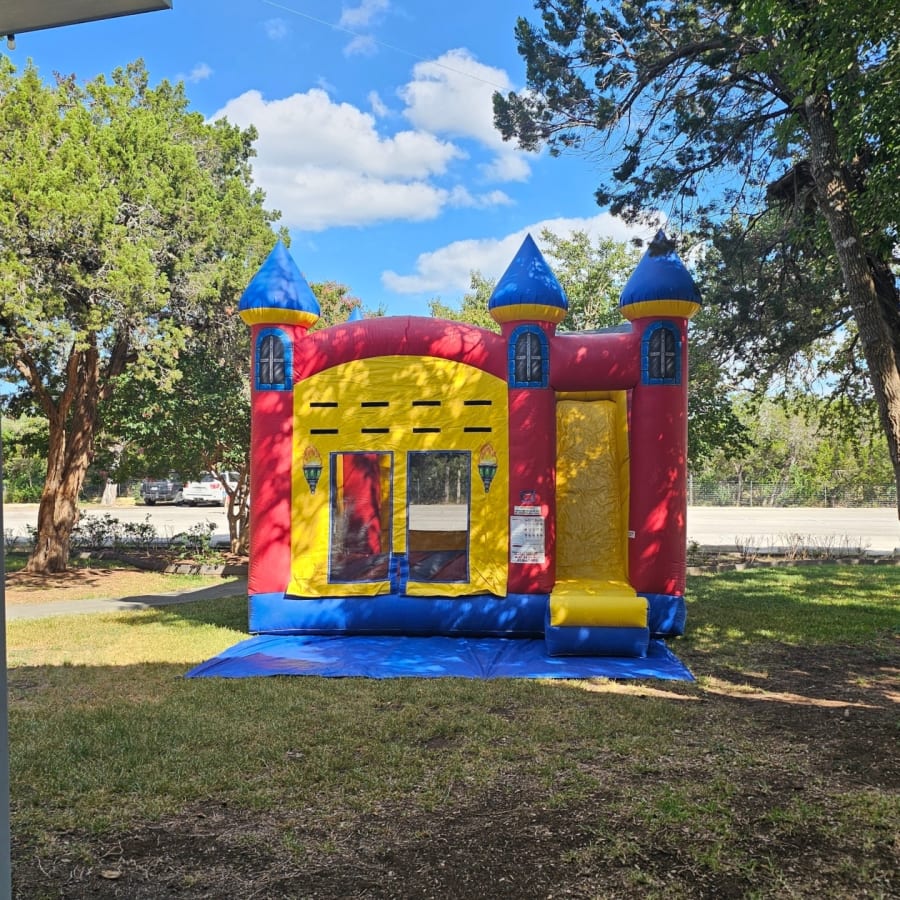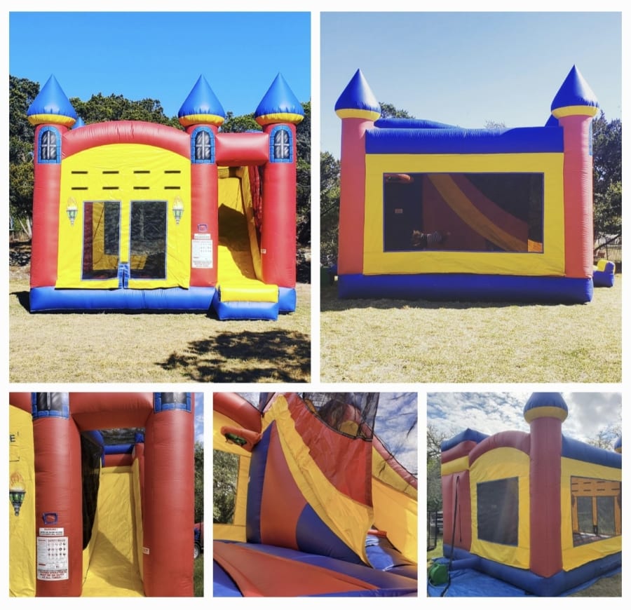 Excalibur Castle Side Slide Combo. Has a basketball ball hoop inside and a 13 foot tall slide with an awesome 50 degree sliding angle that even the big kids will love.