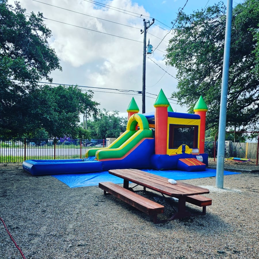We will need an electrical outlet within 100 feet of setup to plug in our extension cord for the blower, no exceptions, if further away it could cause the outlet to overheat and trip your breaker. If you do not have an outlet that close you will need to provide a generator or you can rent one from us, they are located in the Party Extras tab. We will need an outdoor water spigot within 200 feet of setup to connect our water hose, if it's further away you will need to provide the addition length or the unit will have to be used dry. Area must be cleaned BEFORE we arrive of all animal droppings/waste, sticks, sharp rocks, litter, trash or anything that could possibly puncture the unit or cause harm to the children. If needing to go through a small space or through a gate it will need to be at least 4 feet wide or the unit will not fit through the space.