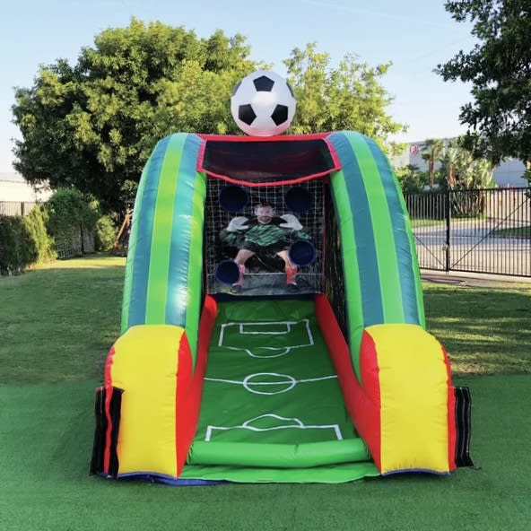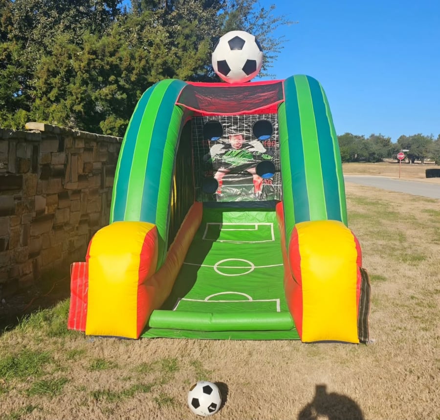 You get three tries to win the game! Kick the ball into one of the openings and lead your team to victory! Soccer balls included.