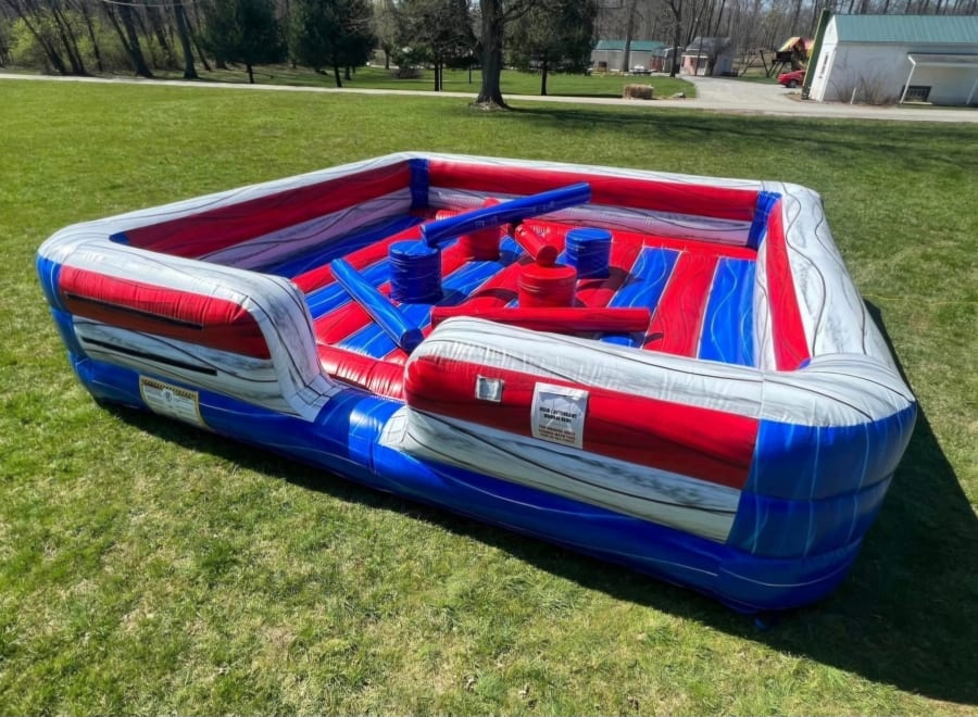 This 2 to 4 person joust inflatable is a favorite amongst competitors! Try to knock your opponent or opponents off their pedestals with a soft joust pole, comes with headgear for extra safety. You can play with 2, 3 or 4 competitors.