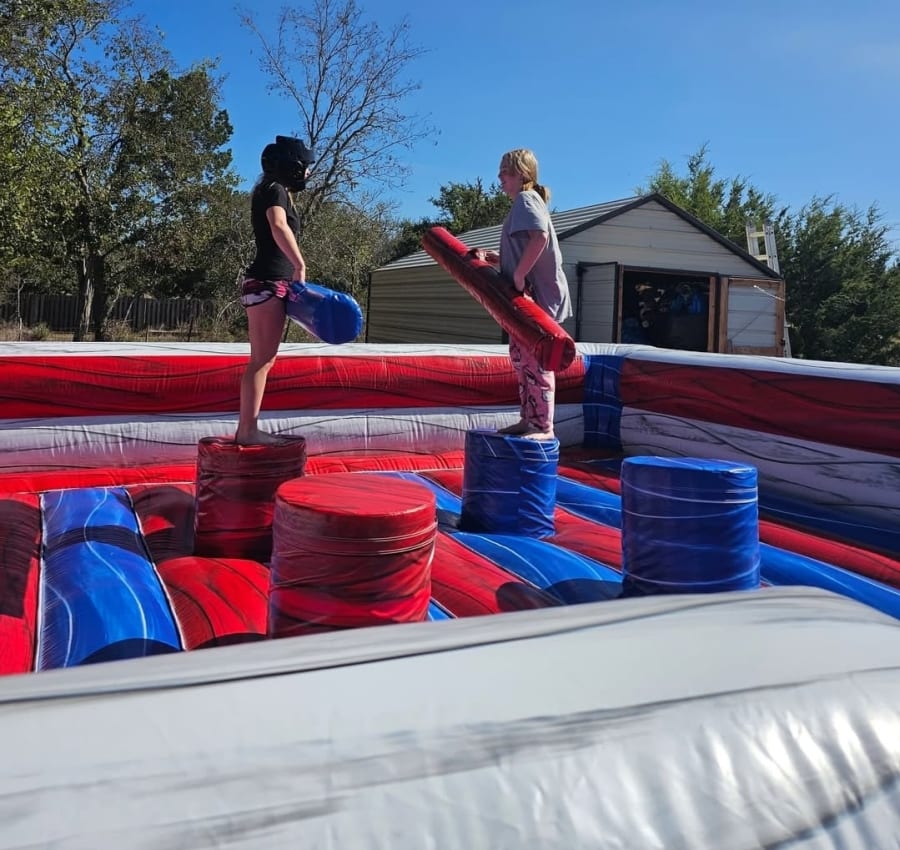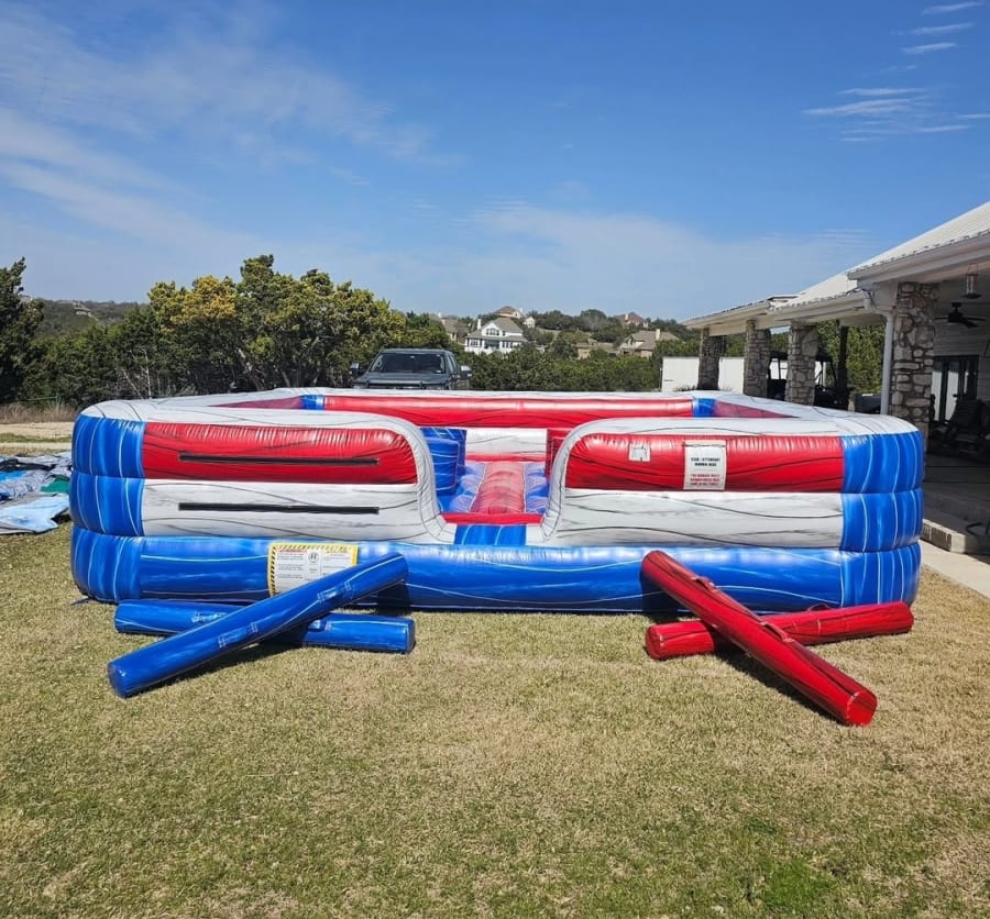 This 2 to 4 person joust inflatable is a favorite amongst competitors! Try to knock your opponent or opponents off their pedestals with a soft joust pole, comes with headgear for extra safety. You can play with 2, 3 or 4 competitors.