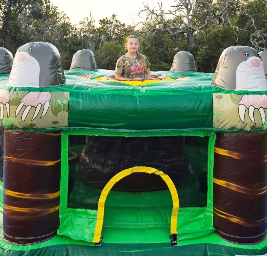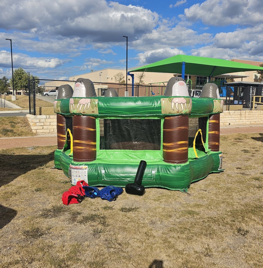 This interactive inflatable is even more fun than the original! Stand in the middle and bop 6 others with an inflatable hammer while they try and grab colored balls from you. Non stop entertainment!