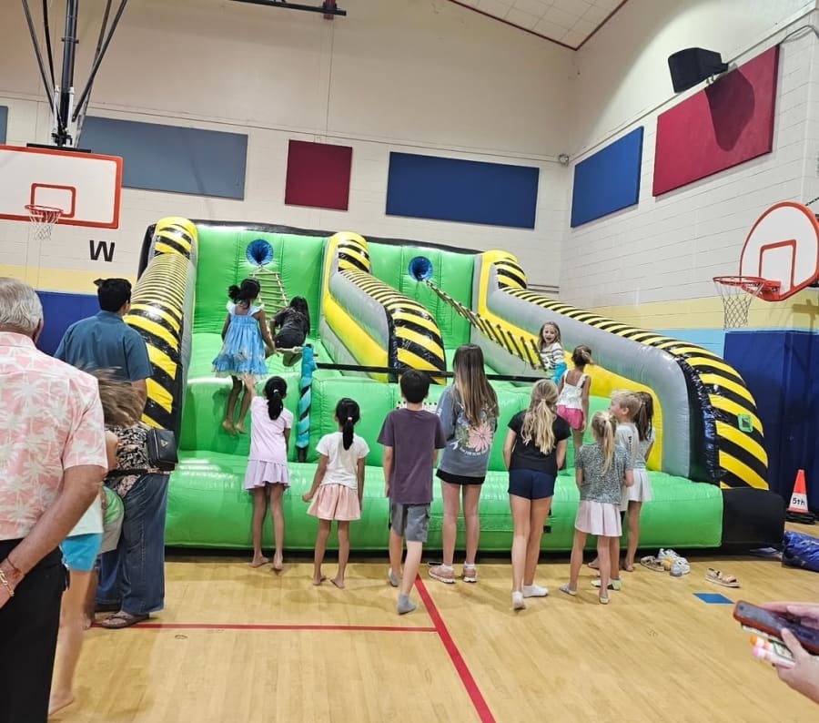 We will need an electrical outlet within 100 feet of setup to plug in our extension cord for the blower, no exceptions, if further away it could cause the outlet to overheat and trip your breaker. If you do not have an outlet that close you will need to provide a generator or you can rent one from us, they are located in the Party Extras tab. Area must be cleaned BEFORE we arrive of all animal droppings/waste, sticks, sharp rocks, litter, trash or anything that could possibly puncture the unit or cause harm to the children. If needing to go through a small space or through a gate it will need to be at least 4 feet wide or the unit will not fit through the space.