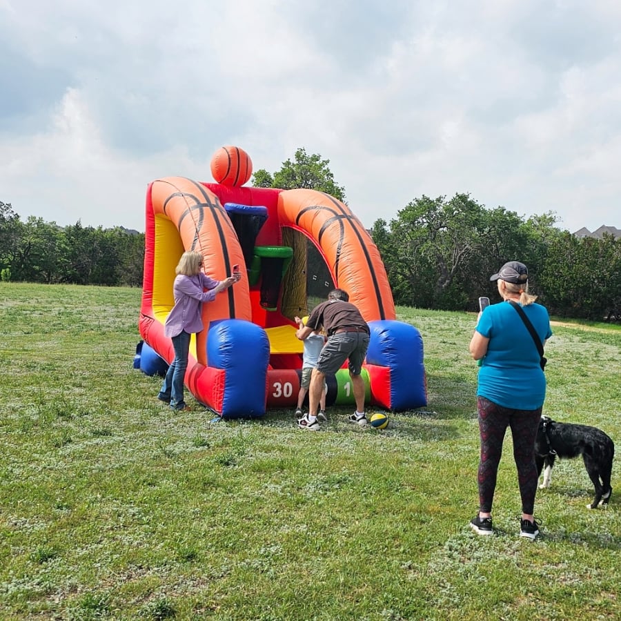 How many points can you rack up? This unit is perfect for events, fairs, block parties and more. Basketballs are included.