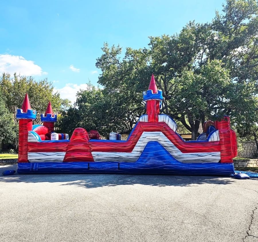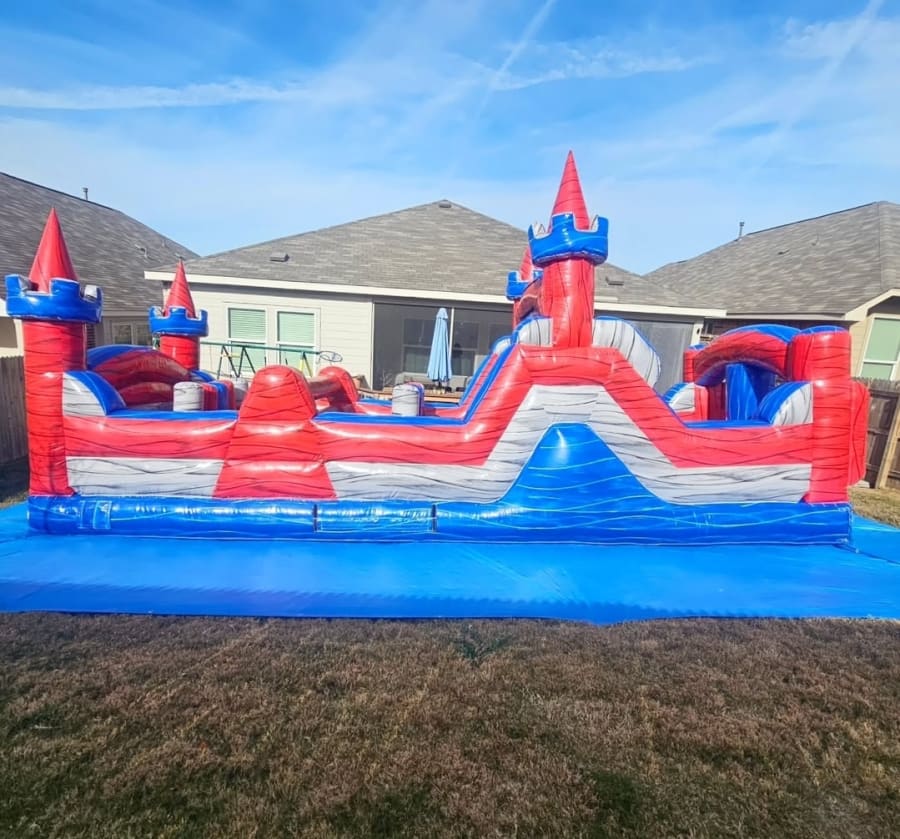 Your kids will go head to head with their friends and find out who can sprint through all obstacles the fastest! At 30 feet long this unit is perfect for smaller yards or for smaller kids and groups. You'll need to crawl, swerve, duck and slide through to the finish, want more length? Then ask about our 65 foot version the Gladiator Rush.