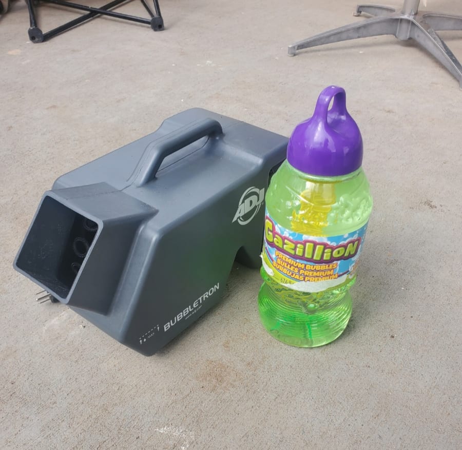 Bubble solution is included with the rental with enough liquid to blow constant bubbles nonstop for over 4 hours continuously. An electrical outlet is required.
