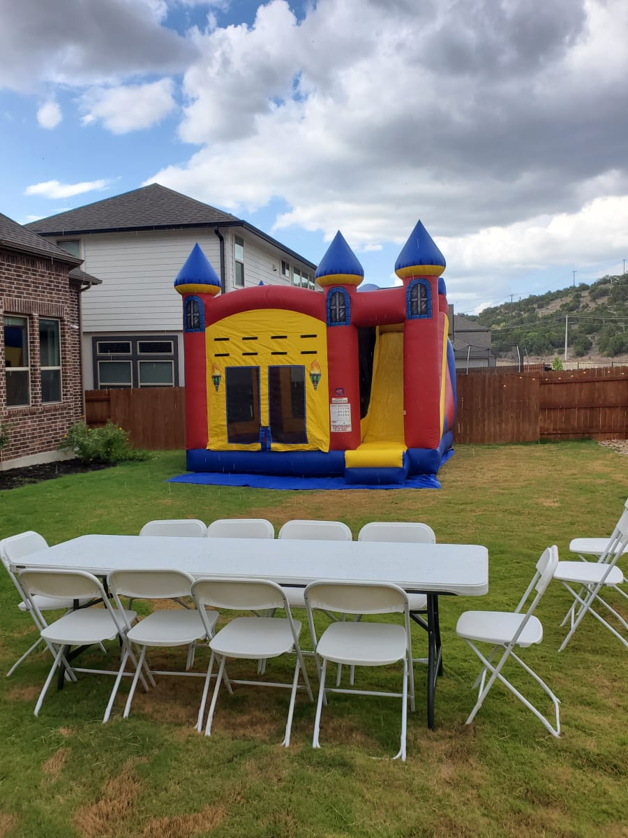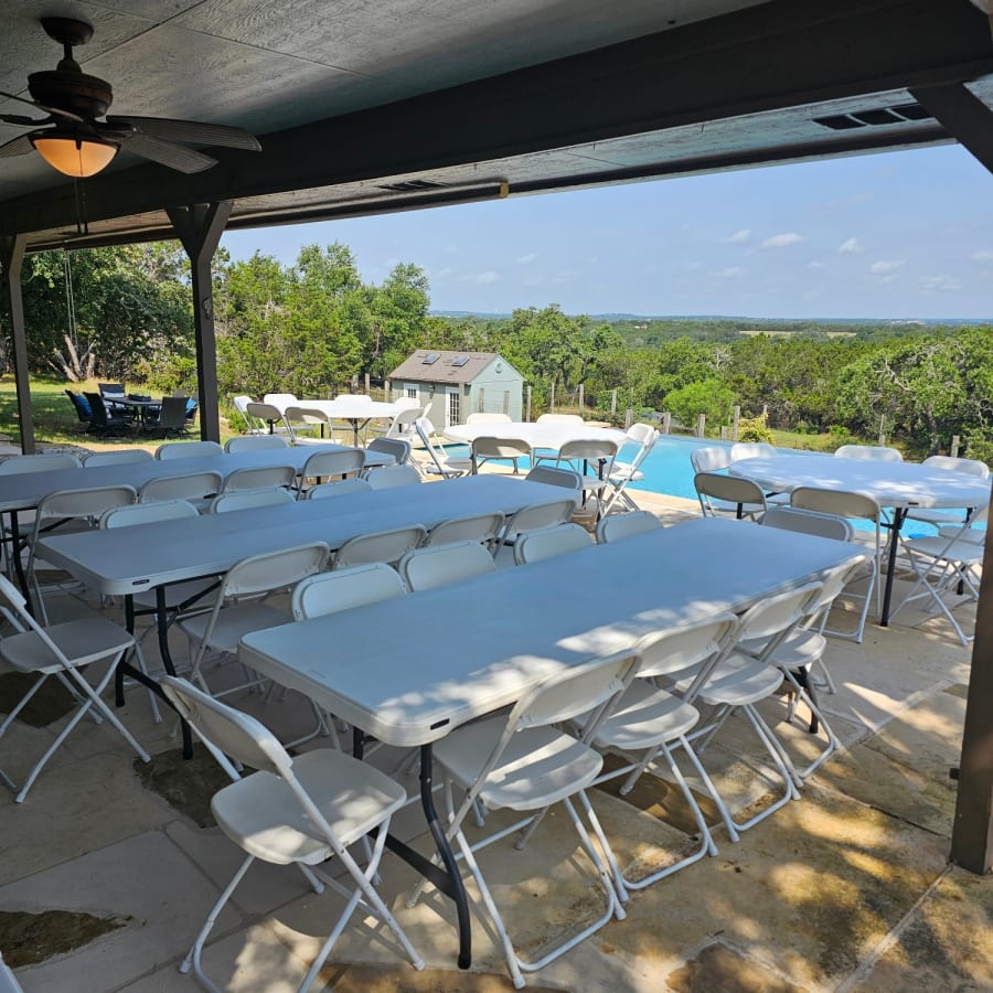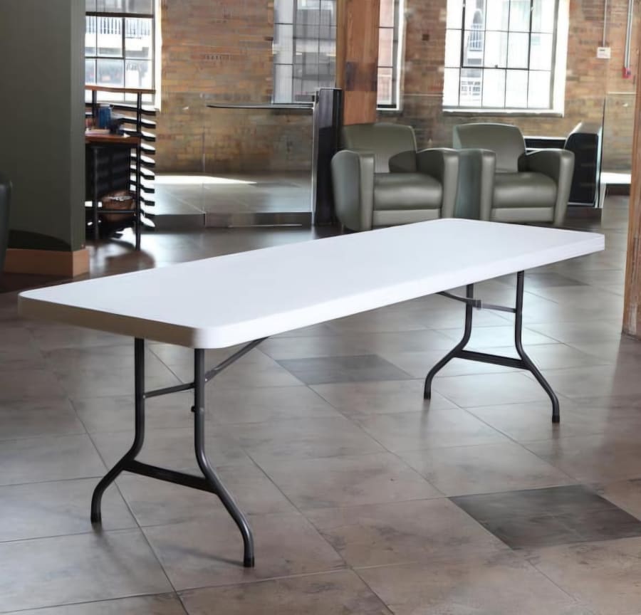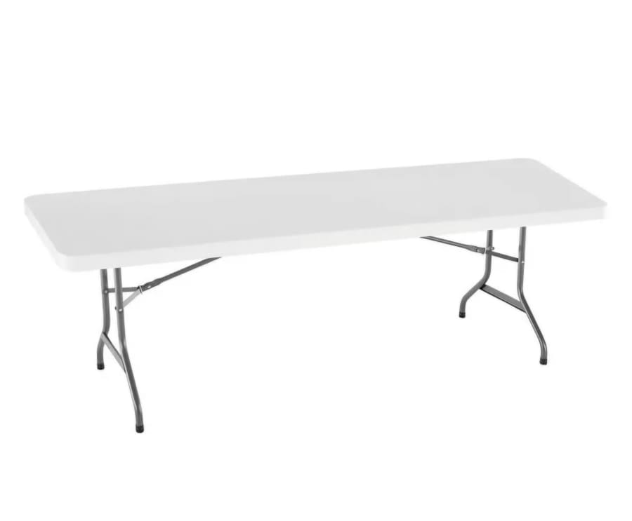 White resin rectangular table at 8 long and 2 feet wide. Great for parties, events and anything tables may be needed.