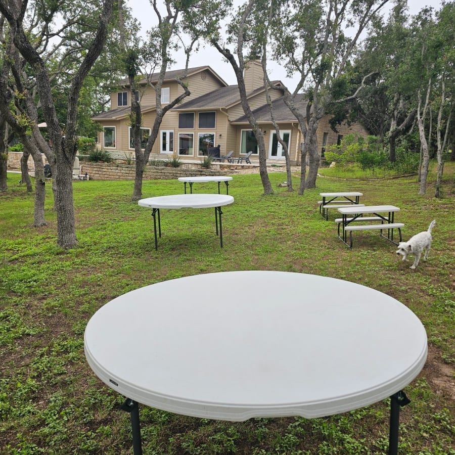 White resin 48 inch round table. Great for parties, events and anything tables may be needed.