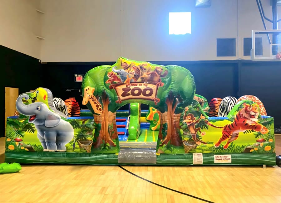 Welcome to the zoo, this toddler playland is perfect for the little ones. Children 6 years and under who love animals will be a huge fan of this inflatable. With no roof so you can safely see the toddlers it has cool animal pop-ups, a slide and bright colors.