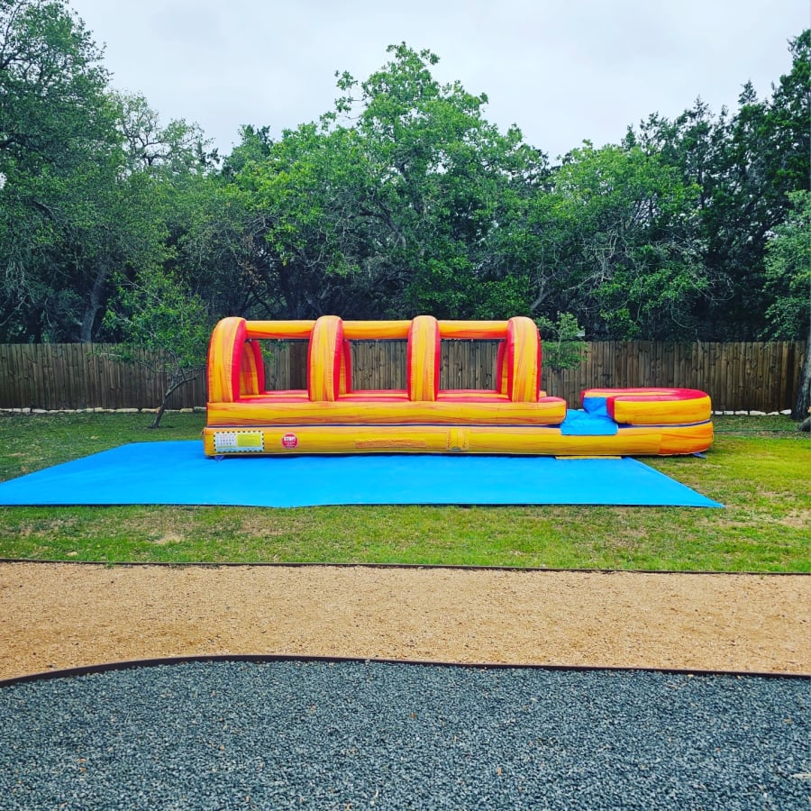 Party Extras tab. We will need an outdoor water spigot within 200 feet of setup to connect our water hose, if it's further away you will need to provide the addition length or the unit will have to be used dry. Area must be cleaned BEFORE we arrive of all animal droppings/waste, sticks, sharp rocks, litter, trash or anything that could possibly puncture the unit or cause harm to the children. If needing to go through a small space or through a gate it will need to be at least 4 feet wide or the unit will not fit through the space.