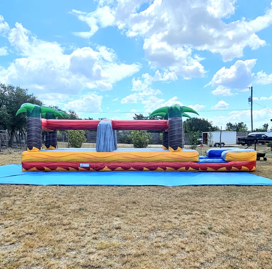35 feet of Slip n' Slide fun! Run up to the slide and jump in as you slide down 35 feet into a huge pool while getting sprayed with water from above. With two lanes it's double the fun!