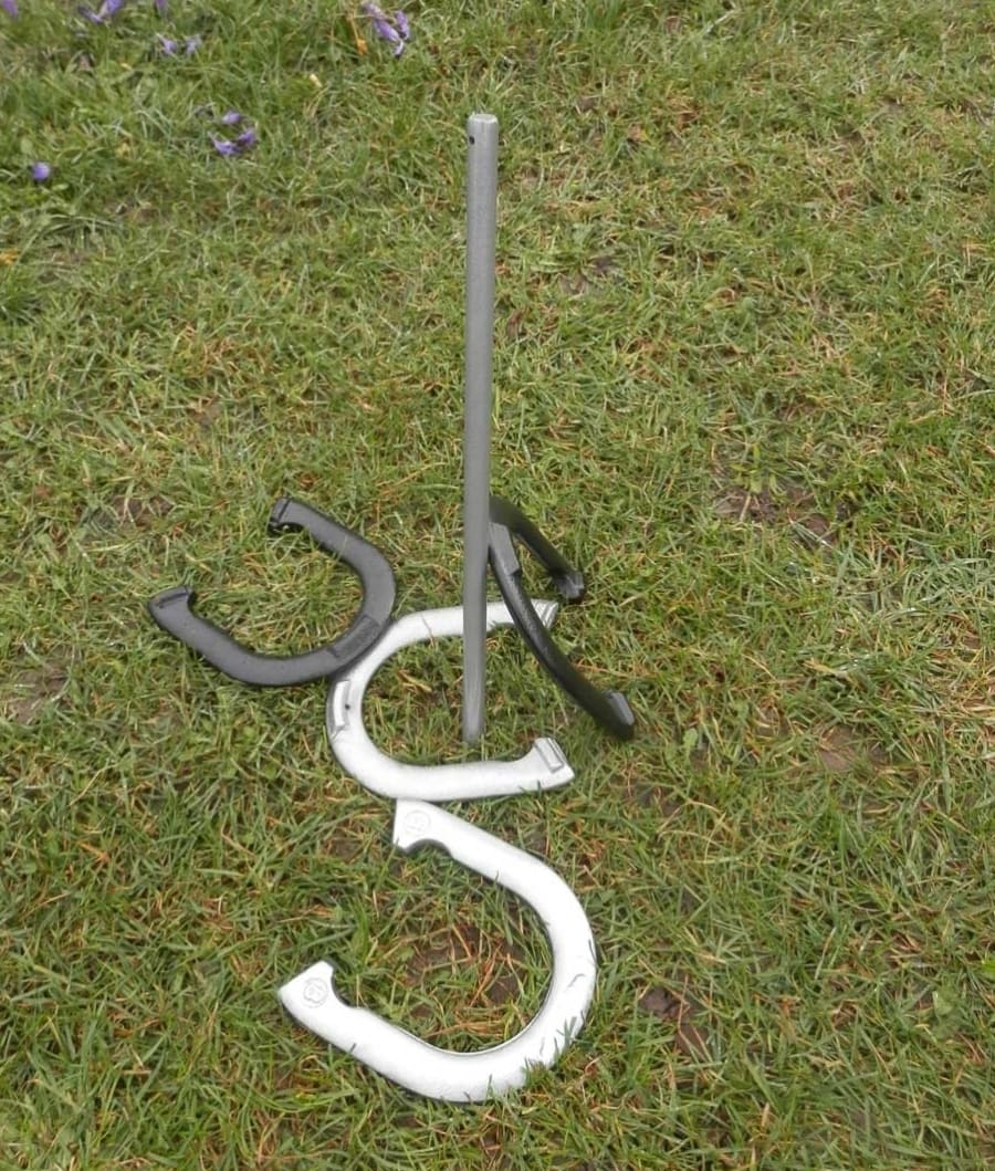 Horseshoes is a classic, low-impact outdoor lawn game where 2-4 players (or teams) alternate tossing four, U-shaped metal shoes at two stakes driven 40 feet apart into the ground. The goal is to score points by landing shoes closest to the stake or by throwing a "ringer," which encircles the stake.